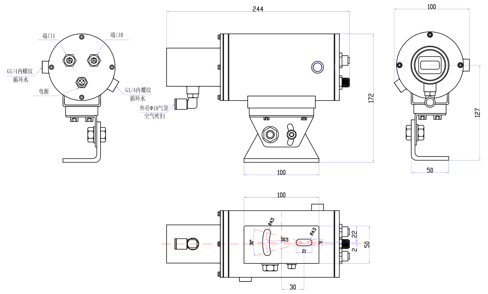 ● 不锈钢外(wai)壳,可通水、气停止冷却