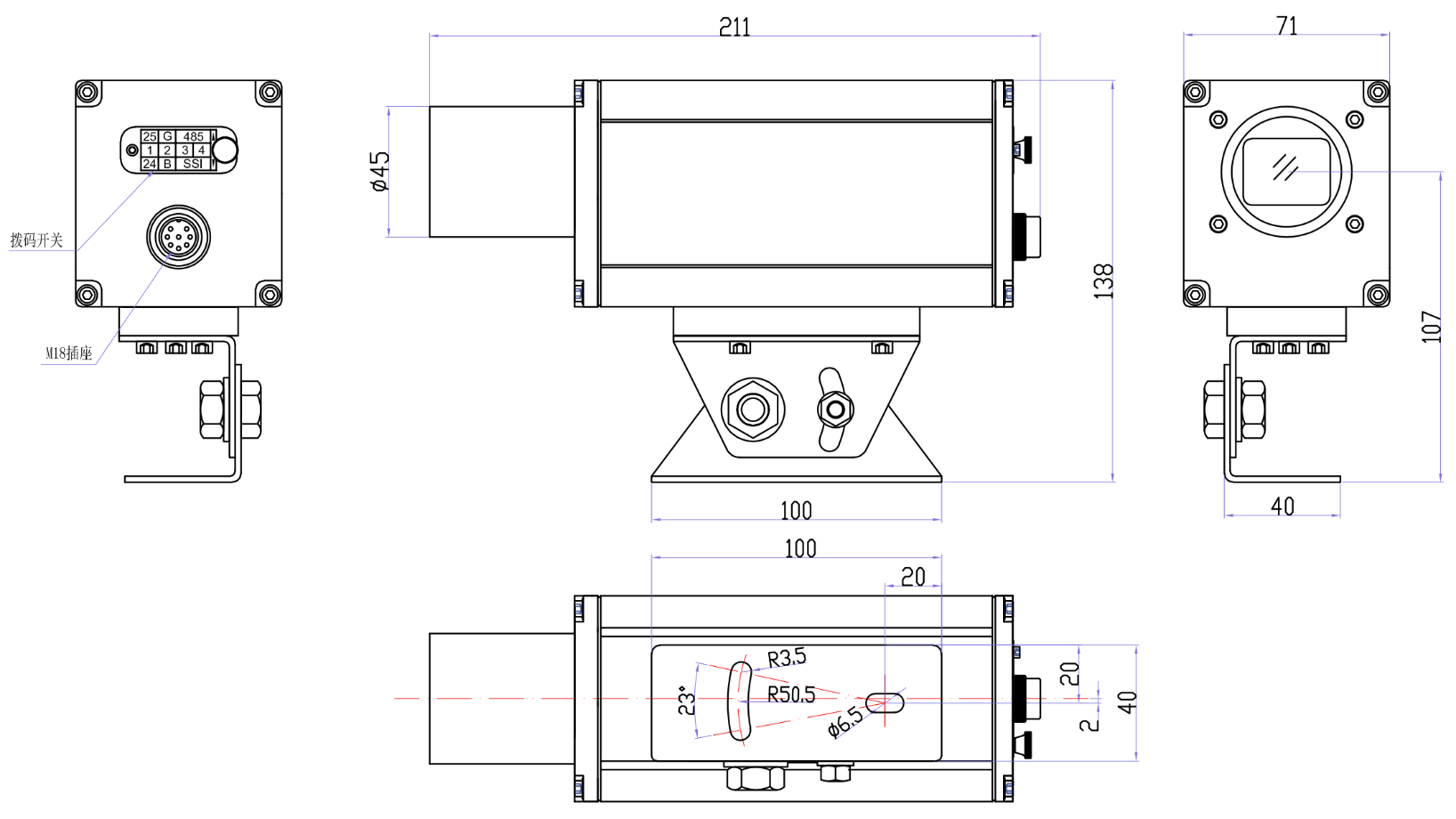 HMLDM-MT40-SSI型服务业智能机械测距仪赛丽石使用在耐用或挪动弹簧测力计停机相隔、社会地位、长度、角度停机侧量,途经操作过程SSI或RS485安全可靠体例将数据库网络传输至PLC工作体系。ꦏ ● 产业出(chu)产情(qing)况下,能坚持很高的丈量(liang)精度(du)和靠(kao)得住性