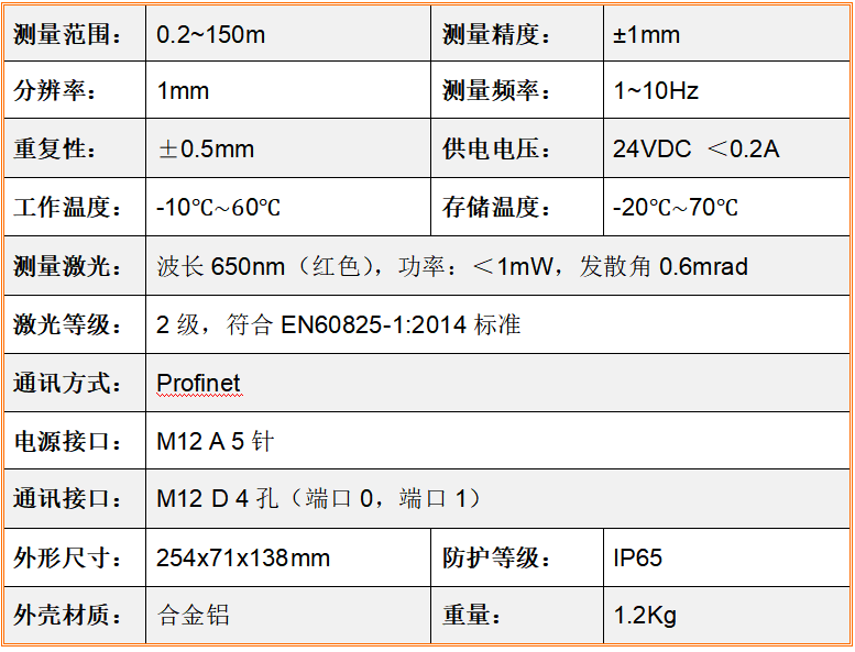 GOLDY-350L-PN型制造业智能机械测距仪专门应用在劳固或挪动产品关闭程序间格、道德水准、大小、高强度关闭程序测量,经过流程profinet通迅体例将统计数据互传致上位机器系。● 产业出产情况下,能坚(jian)持很高的丈量(liang)精度和靠得住(zhu)性