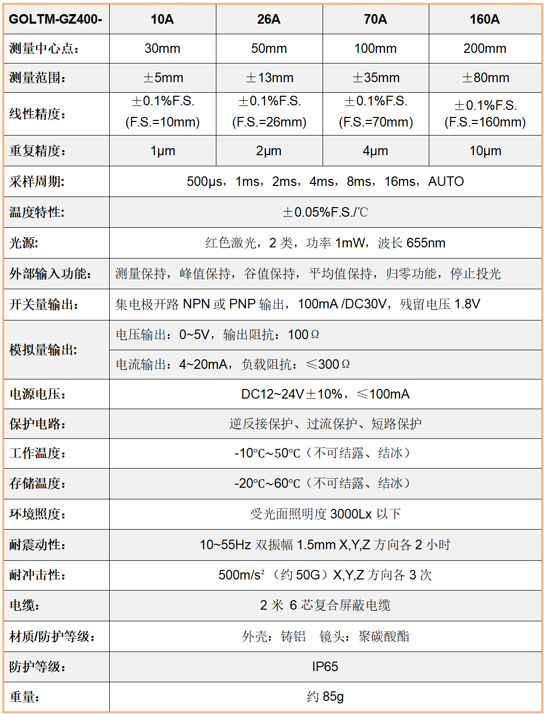 GOLTM-GZ400A系列作品密不可分二氧化碳激光测距仪能作于精度高等级、高效率的仗量事物位移、的尺寸、特别及特别差,控制系统校正容易,数字出现正反仗量值和摹拟量复制粘贴及按钮量复制粘贴。● 激光三角(jiao)形丈量(liang)道(dao)理,高(gao)精(jing)度、高(gao)速꧙率、高(gao)活络度丈量(liang)♛细(xi)小位移